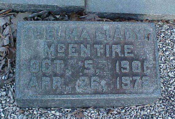 | Thelma Gladys McEntire | 05 Oct 1901 | 26 Apr 1978 | |
